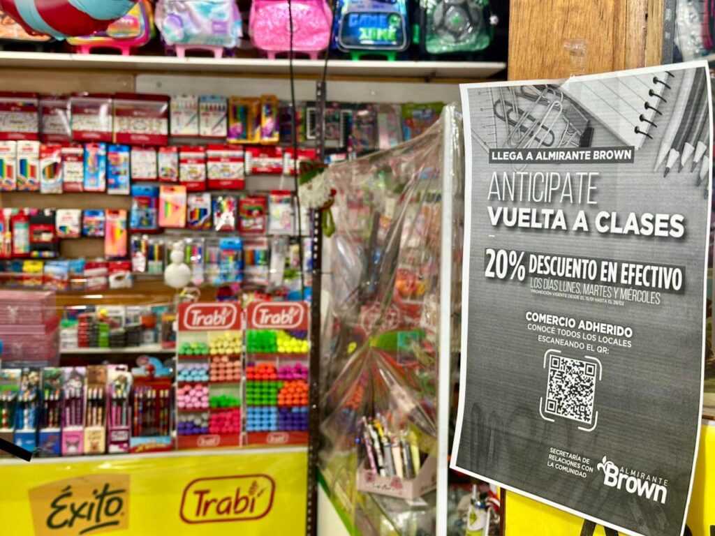 El Municipio de Almirante Brown anunció la puesta en marcha de un acuerdo de precios con librerías y zapaterías, entre otros comercios de nuestro distrito como también marroquinerías, que incluye un 20 por ciento de descuento en compras para el inicio de clases abonando únicamente en efectivo.